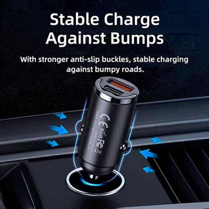 Nesmí chybět na cestách – nabíjejte 2 různá chytrá zařízení současně! Auto nabíječka je navržena pro ultra rychlé nabíjení! Můžete nabíjet až 2 zařízení současně, protože nabíječka má 2 různé USB-A a USB-C vstupy!