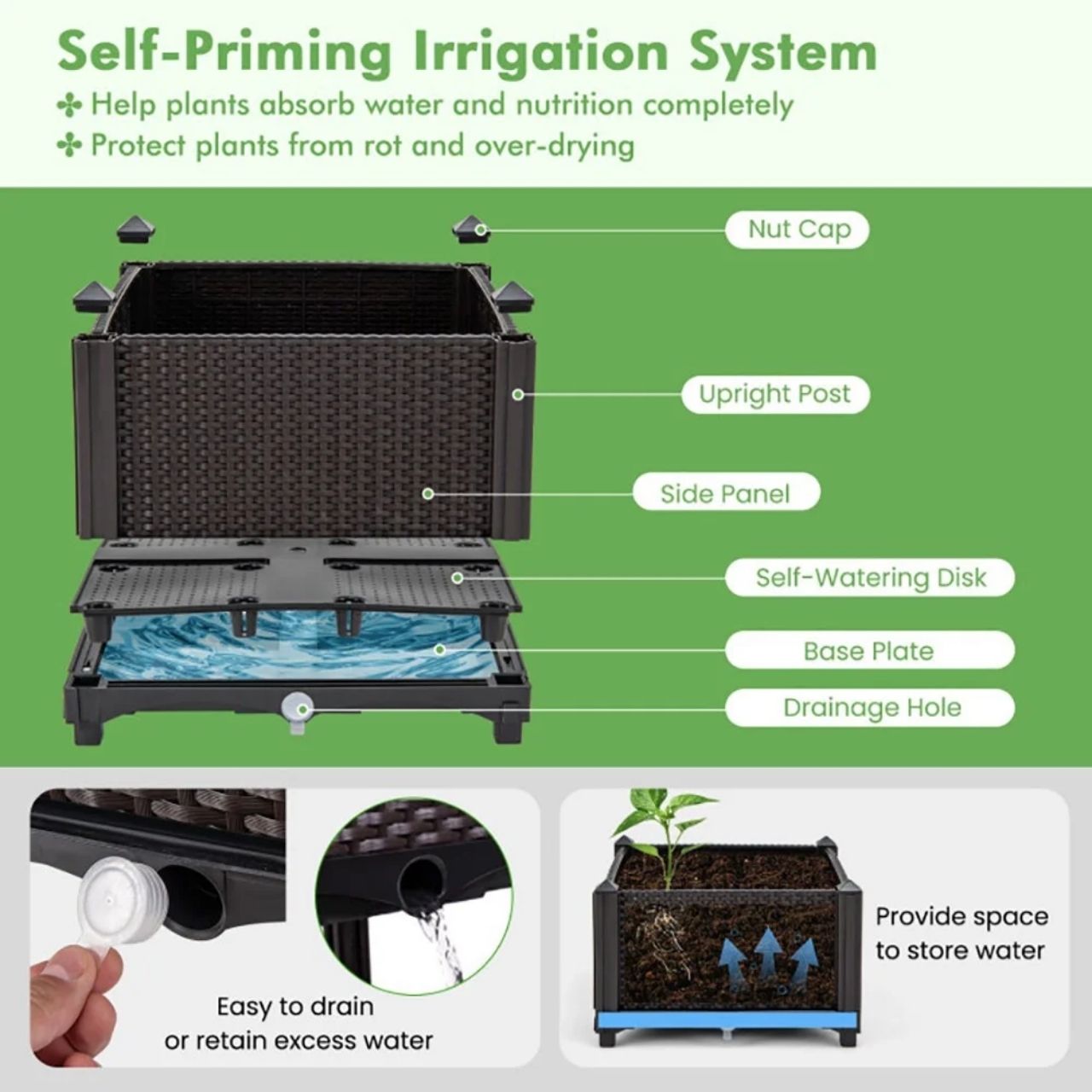 Truhlík je vyvýšený nad zemí, což umožňuje lepší odvodnění a snižuje riziko stagnace vlhkosti a hniloby kořenů. Tento design také nabízí dodatečnou ochranu proti běžným škůdcům, jako jsou myši a šneci.