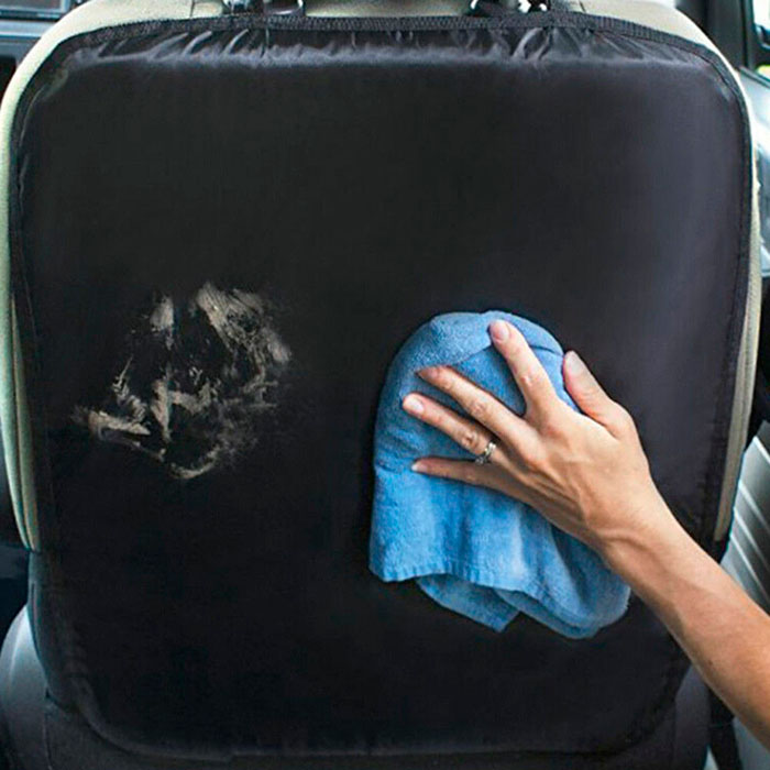 NoKickPad účinně chrání zadní stranu sedadel před špínou a otisky bot.