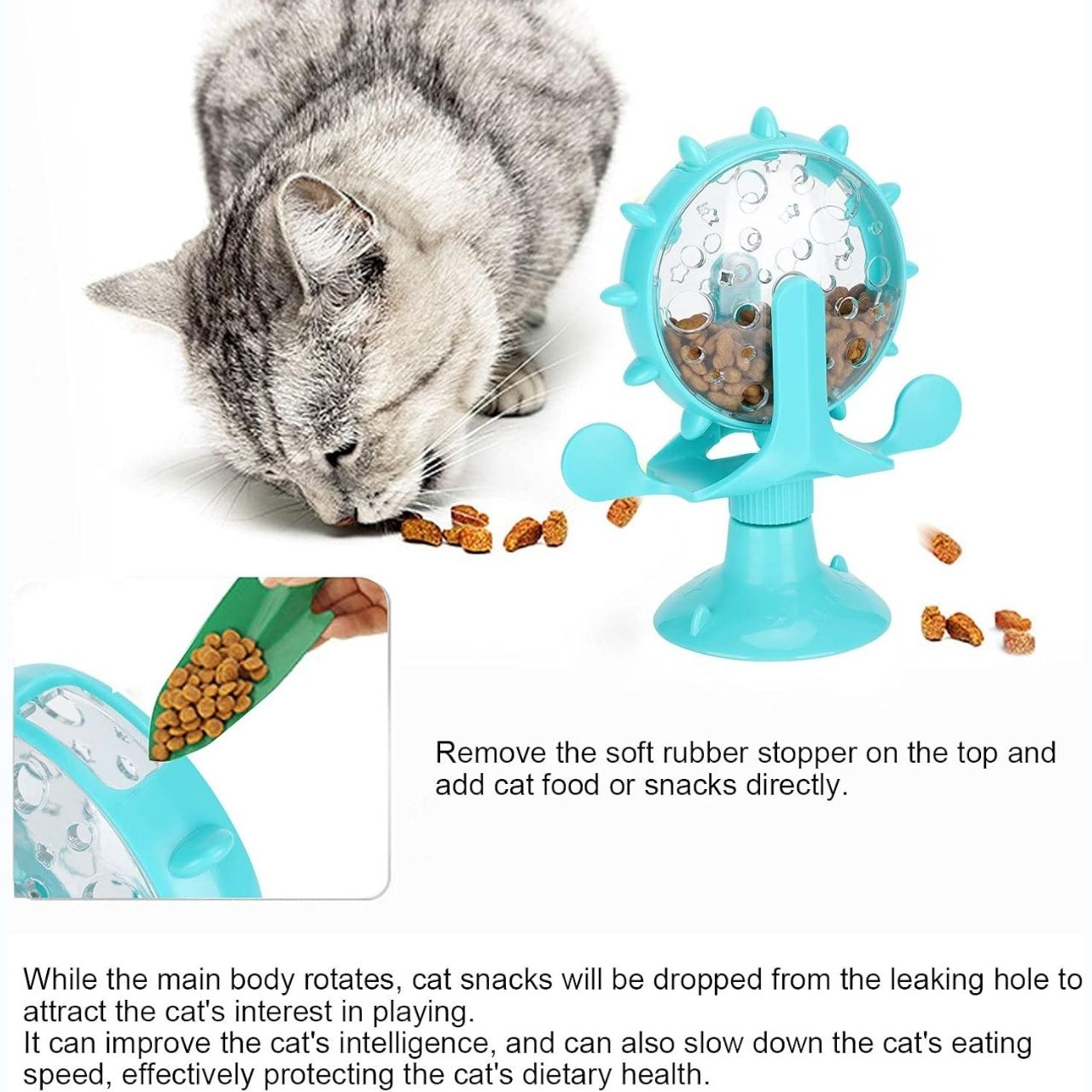 Zábava, cvičení a výživa – vše v jednom! Interaktivní hračka s rotujícím kolem, která animuje vašeho mazlíčka při podávání pamlsků hravým způsobem. Perfektní řešení pro aktivní hru a snížení stresu.