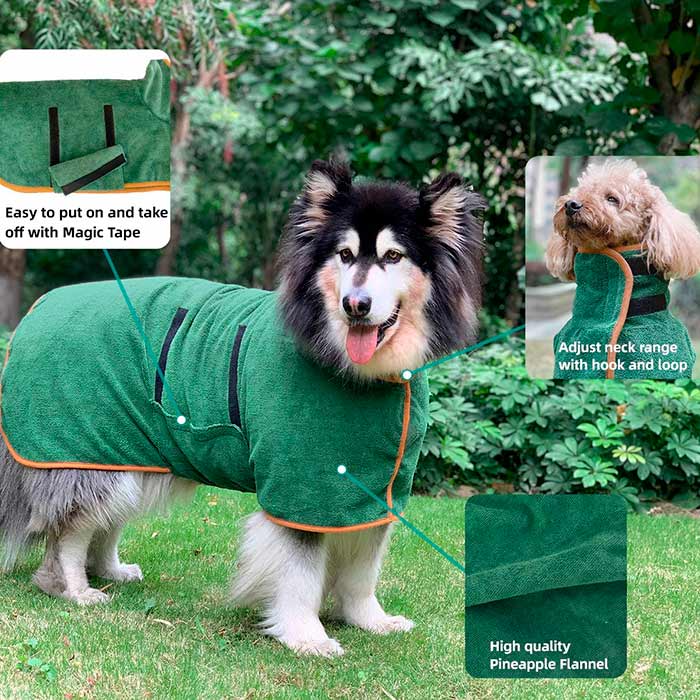 Super savá látka zajišťuje rychlé schnutí srsti a pejska při sušení příjemně hřeje. WrapPet je skvělý pro použití po procházce, plavání nebo sprchování - doma, v autě nebo na dovolené! Můžete si vybrat ze 2 velikostí, které jsou vhodné pro malé a středně velké psy a pro velké psy!